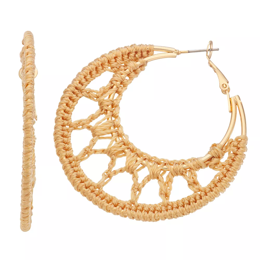 Finish off any ensemble with a touch of bohemian flair in these cord-wrapped gold tone open crescent hoop earrings from Sonoma Goods For Life.