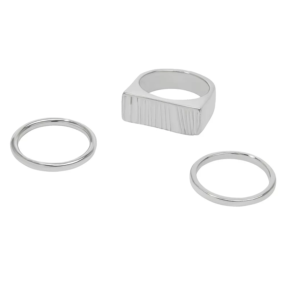 Sonoma Goods For Life® Silver Tone Wavy Textured Rectangular Statement Ring Set