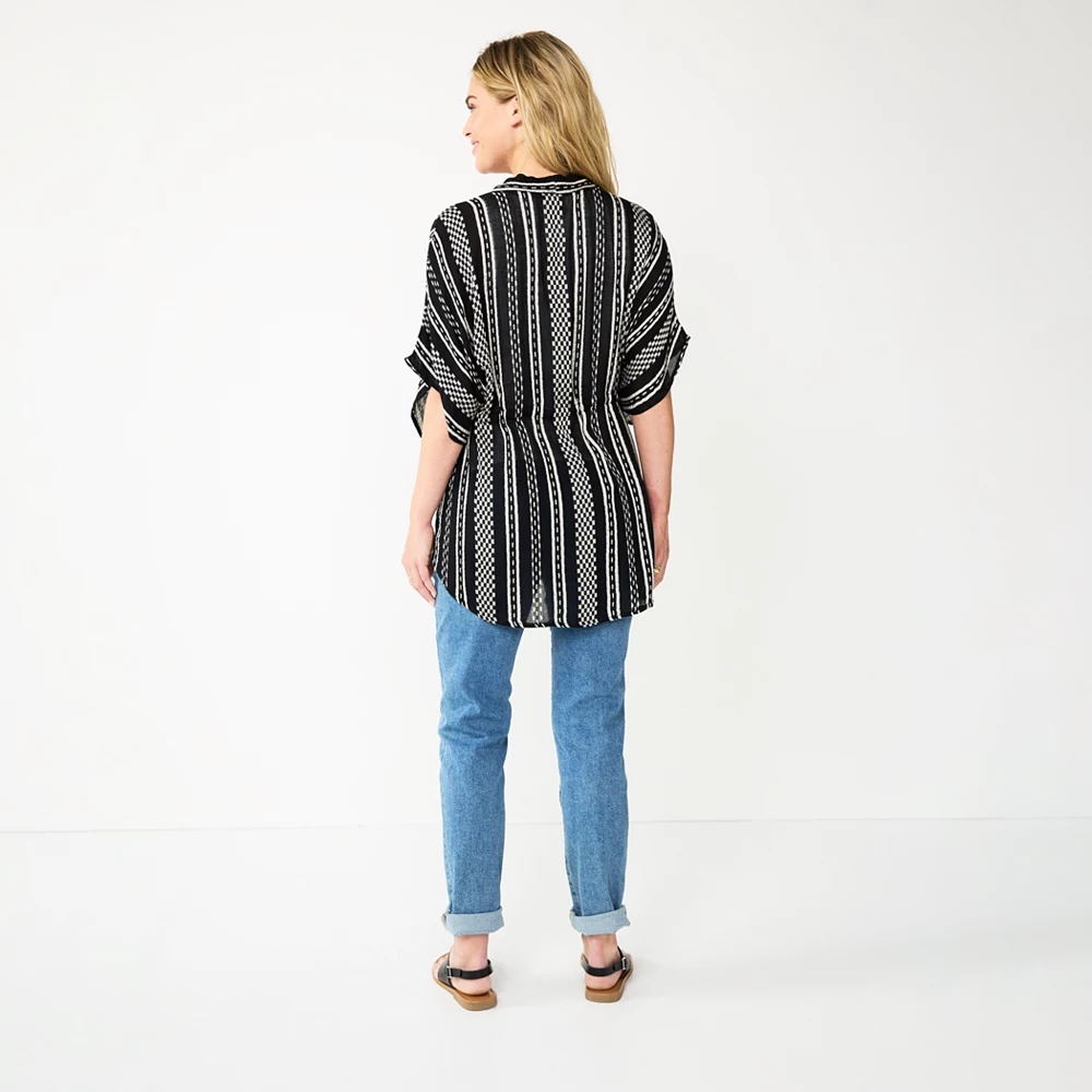 Give your accessories collection a refresh with this women’s tie-front striped ruana from Sonoma Goods For Life.